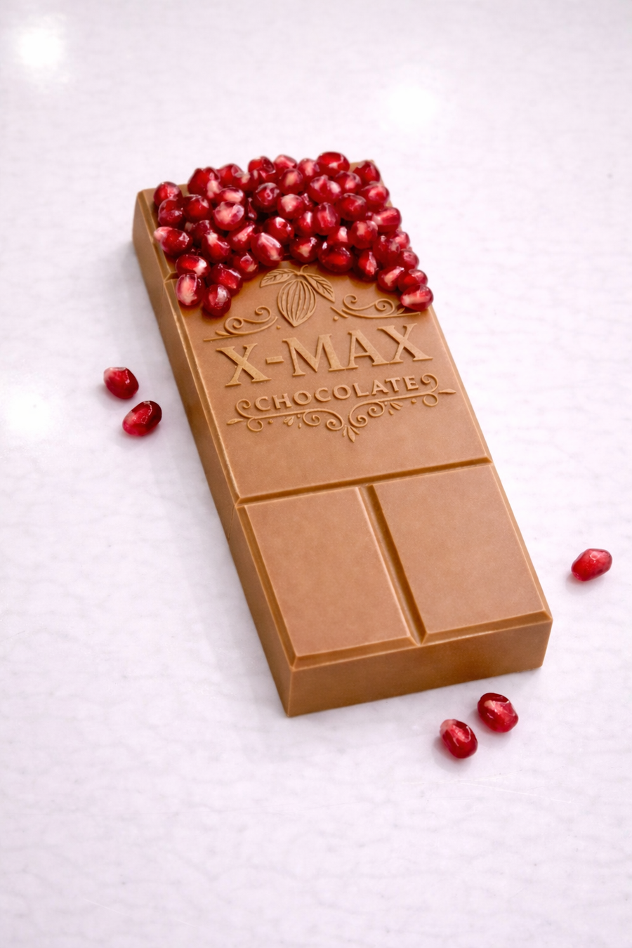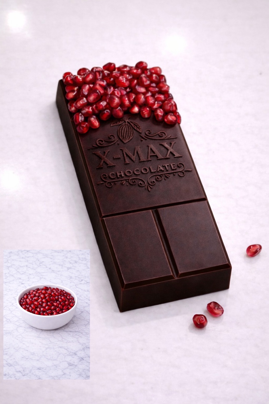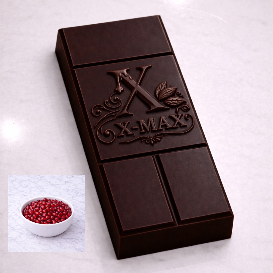Chocolate with pomegranate is a unique blend that combines the smoothness of rich chocolate with the refreshing aroma of pomegranate seeds, giving you a balanced taste between sweetness and a delicious hint of tartness in every piece. 🍫❤️✨