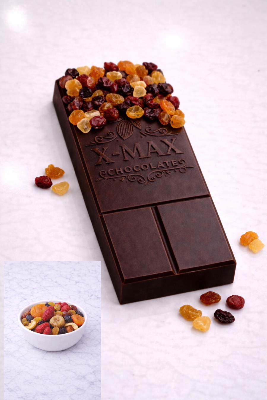 Chocolate with dried fruit is a delicious combination that blends the rich sweetness of chocolate with the natural flavor of dried fruit, giving you a balanced and distinctive taste that combines sweetness and freshness in every piece. 🍫🍓✨